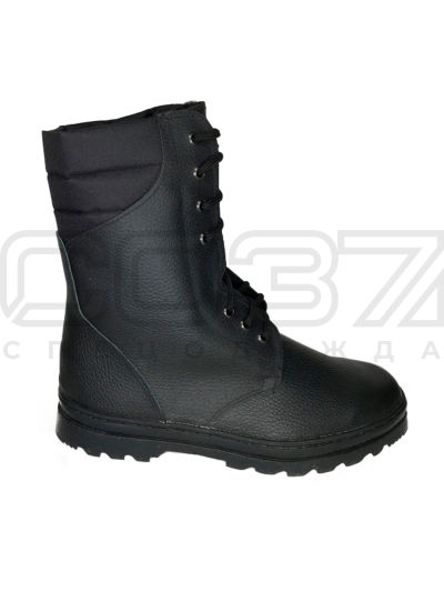 - Верх обуви комбинированный: из обувной искусственной кожи (кирза) и обувной юфти.