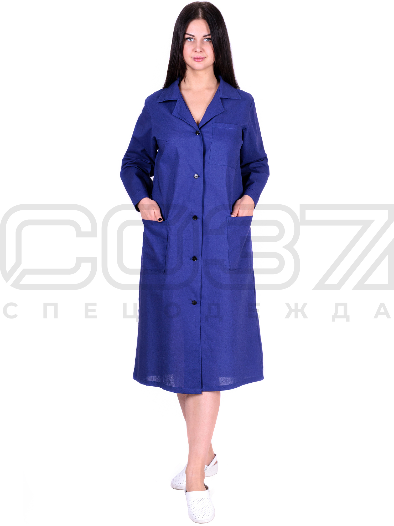Халат рабочий женский цв.тёмно-синий тк.бязь в Смоленске