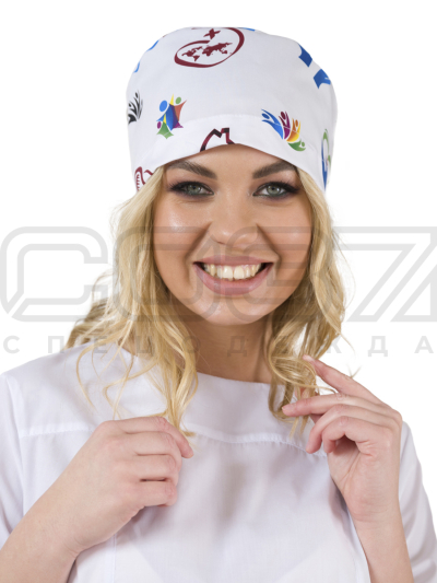 Колпак медицинский на резинке ИМ603(N3-0) цв.белый/рисунок тк.стрейч в Смоленске