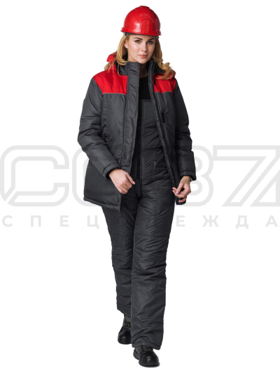 Куртка зимняя женская "Артемида" цв.т.серый/красный тк.дюспо в Смоленске