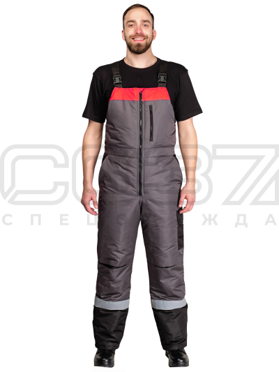 Полукомбинезон рабочий зимний "Азимут" с СОП цв.серый/красн/черн тк.таслан в Смоленске